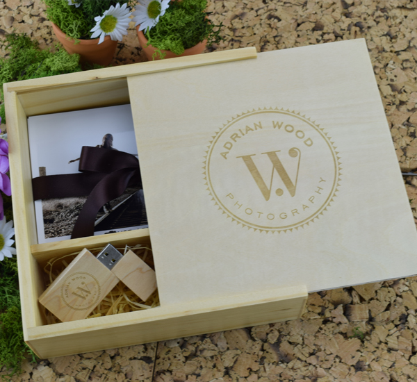 Wooden Block USB 3.0 + Large Wooden Slide Photo Print Gift Box