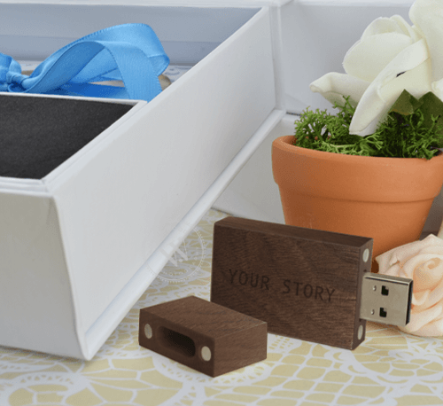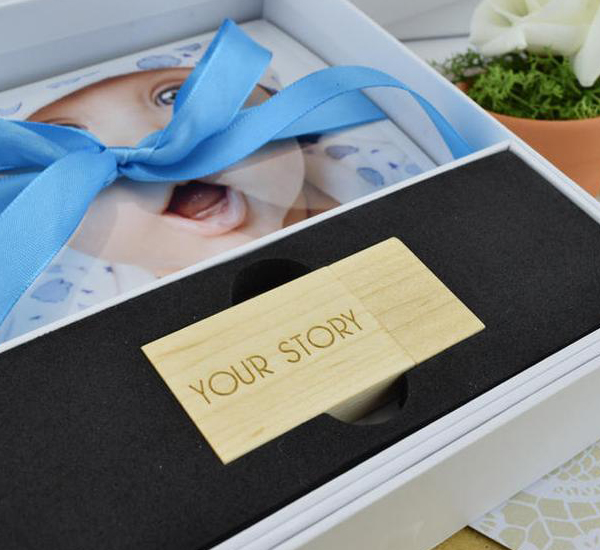 Wooden Block USB Stick 3.0 and Large White Magnetic Flip Photo Prints Gift Box