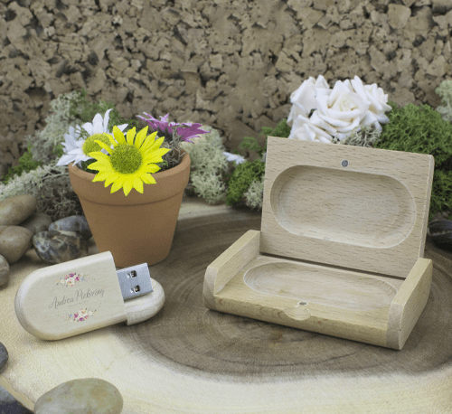 Wooden Pebble USB Stick 3.0 and Small Wooden Flip Gift Box